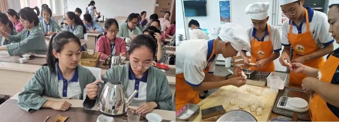 在一周的学农活动中,同学们通过自主选课、走班上课,参与到9门不同的课程当中。在《一叶知茶》中,同学们在茶艺老师指导下学习识茶泡茶;在《面点制作》、《家常菜制作》和《肉乳蛋感官体验》等课程上,学会了蒸馒头、包子和一些基本家常菜的制作,还学习了鉴别肉乳蛋品质和营养价值的基本方法。《园林小景施工》让员工们体验了花园景观设计的创意和乐趣;《压花小画》将干花随心设计成各式各样的艺术品;《艺术插花》课后同学们拿着一个一个美丽的作品脸上洋溢着快乐的微笑;《小麦收割》、《整地作畦》使同学们拿起农具真正融入了一把农村麦收、整地的真实场景。一周的学农活动,达到了以劳树德、以劳增智、以劳强体、以劳益美、以劳创新的目的。