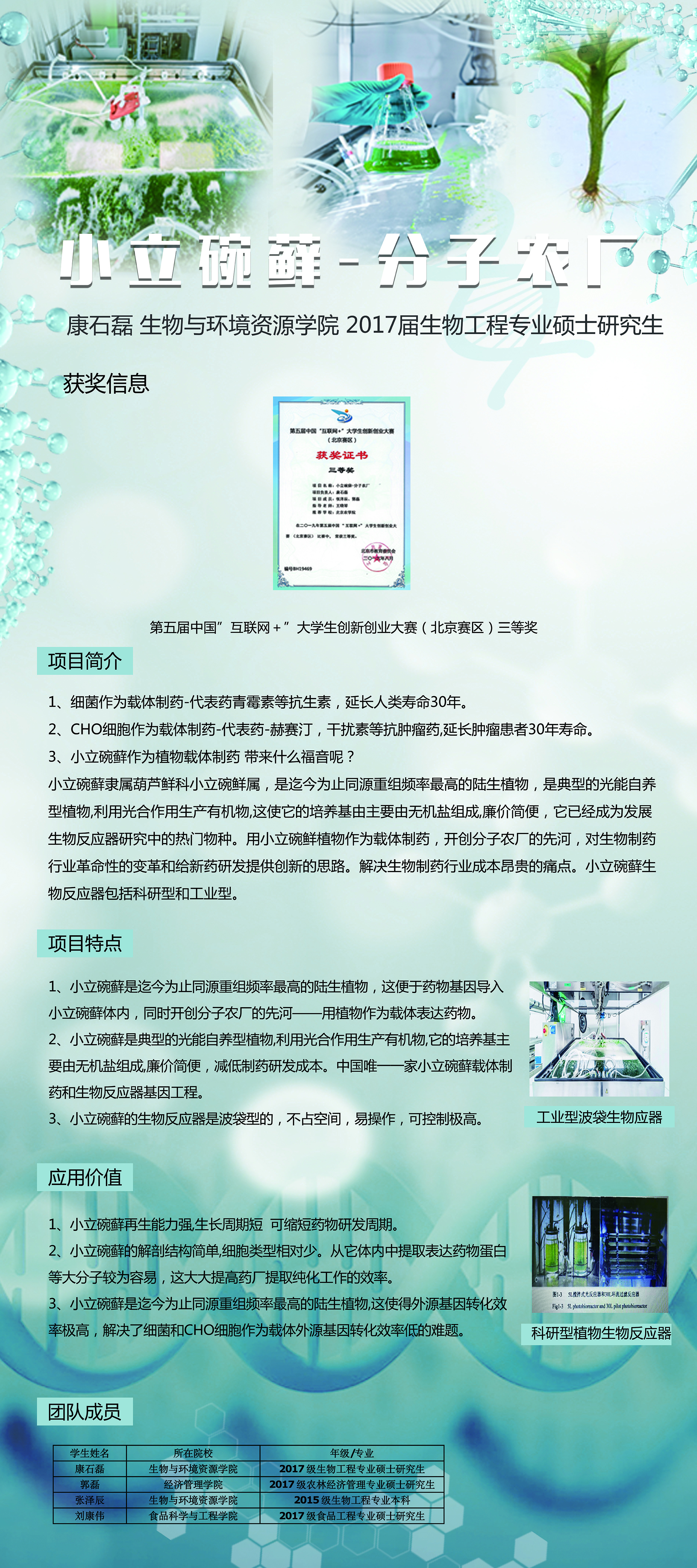 WilliamHill中文官方网站优秀老员工创新创业团队展示(四)——小立碗藓—分子农厂