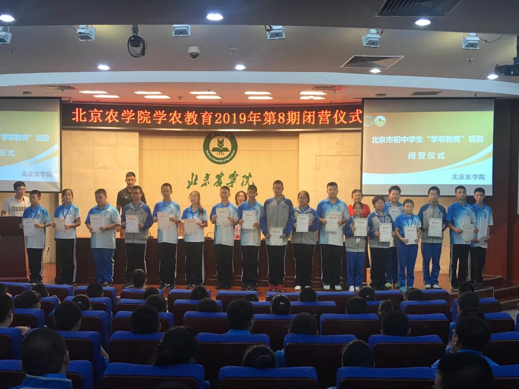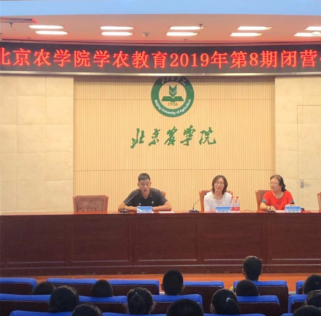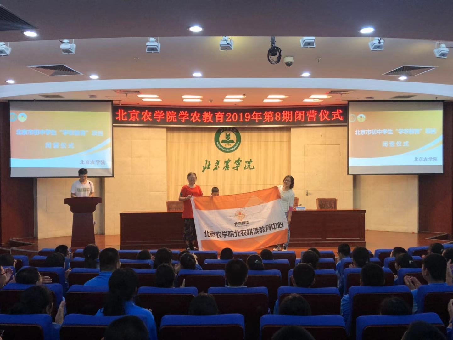 9月27日中午12:00WilliamHill中文官方网站学农教育2019年第8期闭营仪式在WilliamHill中文官方网站图书馆报告厅举行,与会领导有首钢集团有限公司矿业公司职工子弟公司董事长邢桂冬,年级组长周建老师,WilliamHill中文官方网站北农耕读教育中心主管陈学珍教授,WilliamHill中文官方网站创新创业公司王树涛老师,闭营仪式一开始,学农师生共同欣赏了学农的精彩视频,随着大家阵阵欢歌笑语之后,在坐领导为员工颁发优秀学员证书,鼓励在学农期间表现优异的同学,首钢集团有限公司矿业公司职工子弟公司与WilliamHill中文官方网站交接学农旗帜。