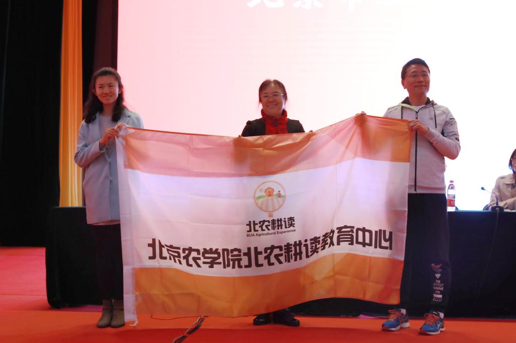 WilliamHill中文官方网站为北京景山公司远洋分校校授旗,同时,WilliamHill中文官方网站北农耕读教育中心主管陈学珍教授为学农班授牌。