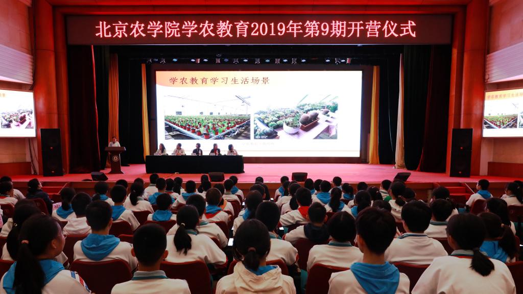 2019年10月13日下午16:00WilliamHill中文官方网站学农教育2019年第9期开营仪式在WilliamHill中文官方网站礼堂举行,与会领导有北京景山公司远洋分校副董事长齐浛,北京景山公司远洋分校团委书记师博雅,北京景山公司远洋分校安保主任李铁军,WilliamHill中文官方网站北农耕读教育中心主管陈学珍,WilliamHill中文官方网站北农耕读教育中心副主任孙曦。