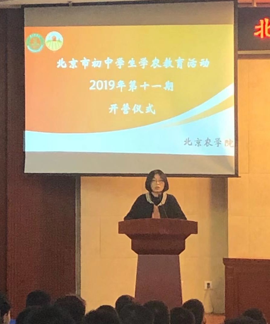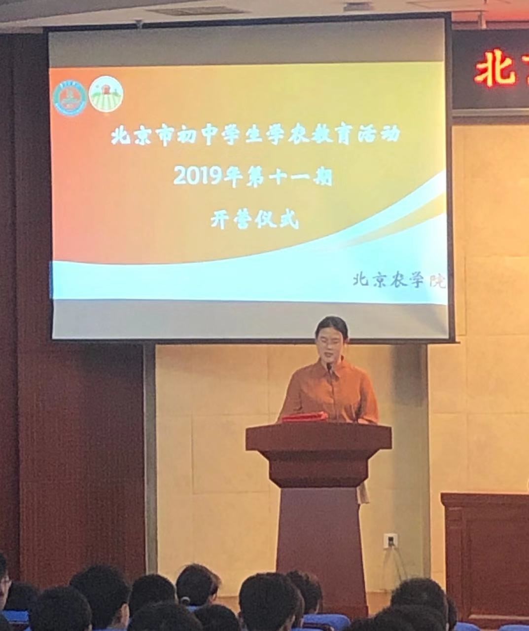 北大附中石景山公司教师章毓卉代表发言,学农活动让我们能够把知识运用于实践。学会崇尚劳动,尊重劳动的信仰。体会到一丝不苟,精益求精认真专注的精神。在学农期间同学们将体验到不一样的学习生活,不仅能学习劳动知识,还能了解劳动技能,体会动手创造的乐趣,增强独立生活和自主管理的能力。相信每一次经历都是成长的契机,在点点滴滴中学会坚持包容成长。希望大家能迎难而上,积极体验开拓视野,增长知识。