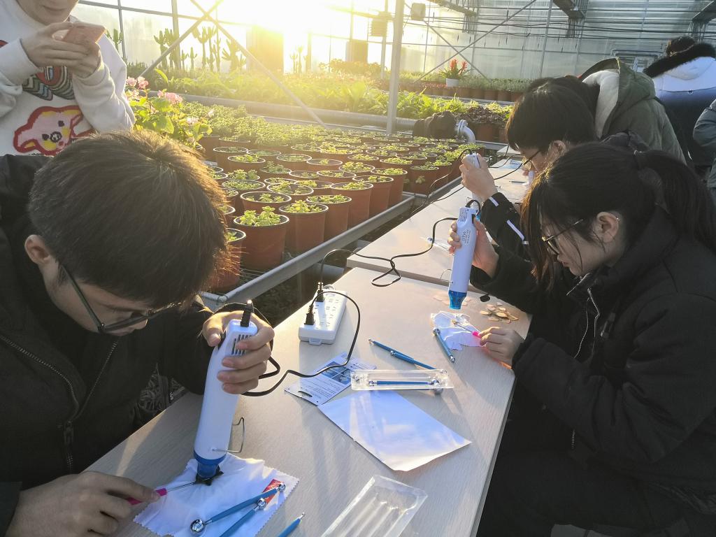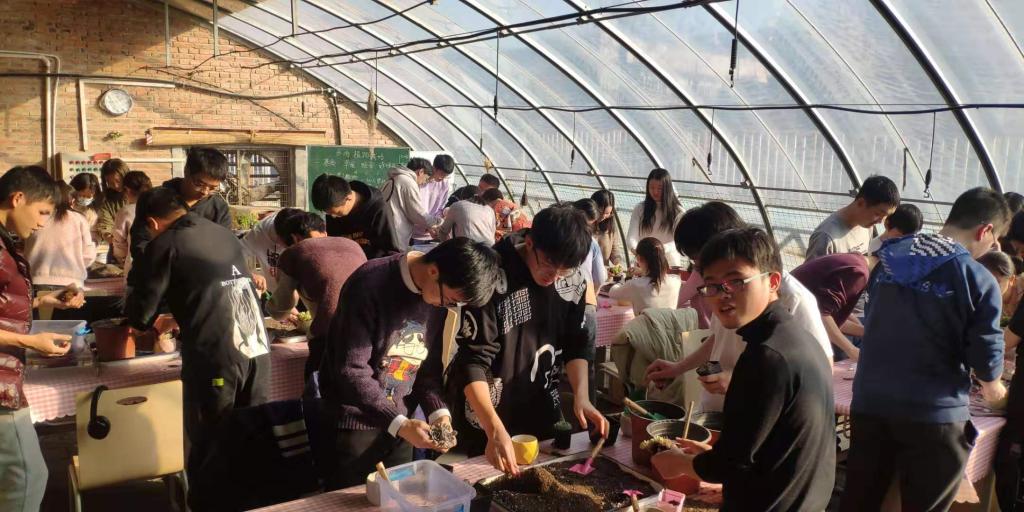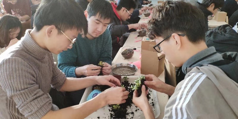 在活动中,同学们及老师体验了多肉植物栽培、热缩片工艺、微景观等三个活动。