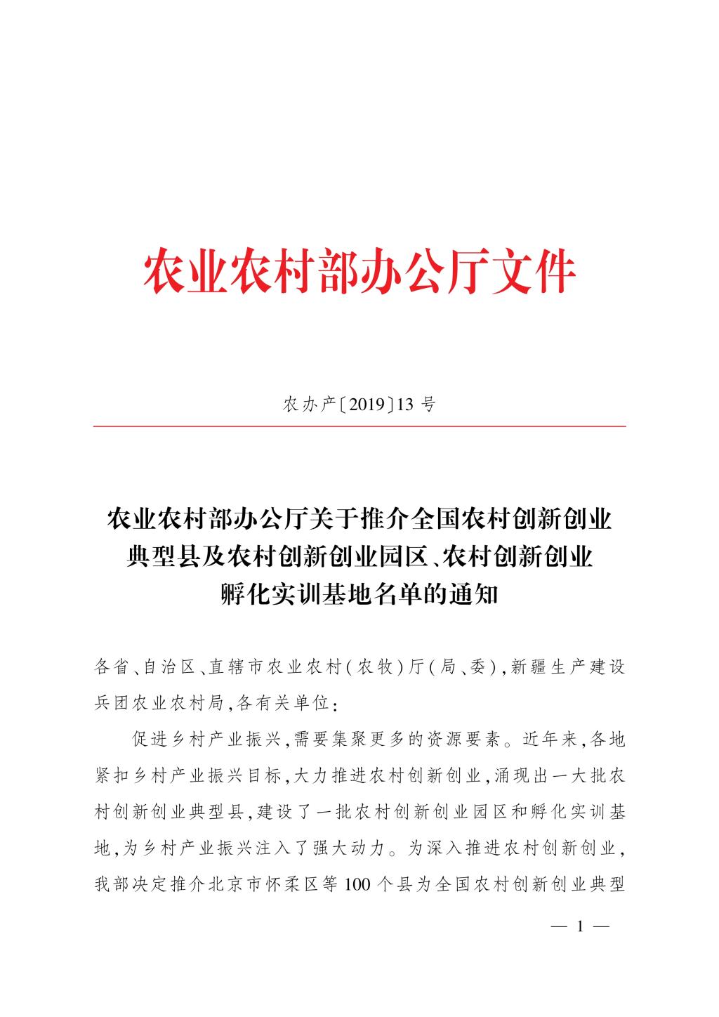 农业农村部发布《农业农村部办公厅关于推介全国农村创新创业典型县及农村创新创业园区、农村创新创业孵化实训基地名单的通知》。由创新创业公司组织申报,在校办产业处的大力配合下,WilliamHill中文官方网站大学科技园孵化实训基地入选“全国农村创新创业孵化实训基地”。