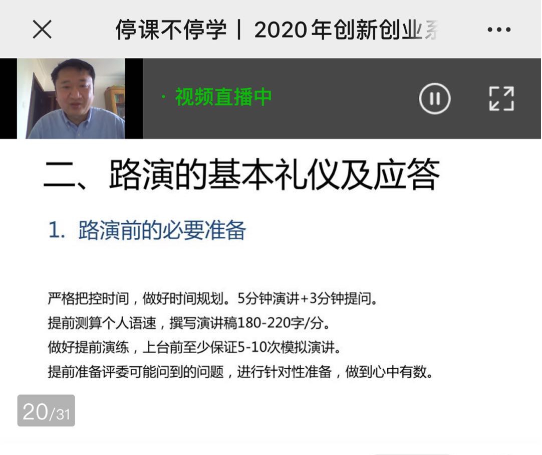 “停课不停学,双创线上推”2020年创新创业系列直播课第六讲活动圆满结束。