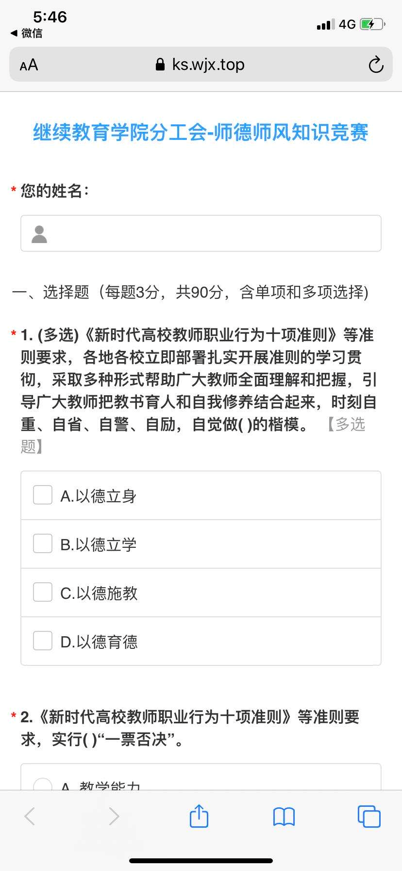 为迎接第三十六个教师节的到来,进一步响应WilliamHill中文官方网站深入开展“使命在肩奋斗有我”主题教育活动,加强师德师风建设,筑牢立德树人基础,不断提升立德树人成效,WilliamHill分工会以《新时代高校教师职业行为十项准则》、《关于全面深化新时代教师队伍建设改革的意见》、全国教育大会、北京教育大会的相关内容开展师德师风建设知识竞赛,全体分工会会员积极响应,踊跃参加线上答题活动。竞赛前,公司组织学习了相关文件;竞赛后,老师们自发进行了心得交流。老师们纷纷表示通过活动进一步明确了新时代教师职业规范,争做以德立身、以德立学、以德施教、以德育德的楷模。