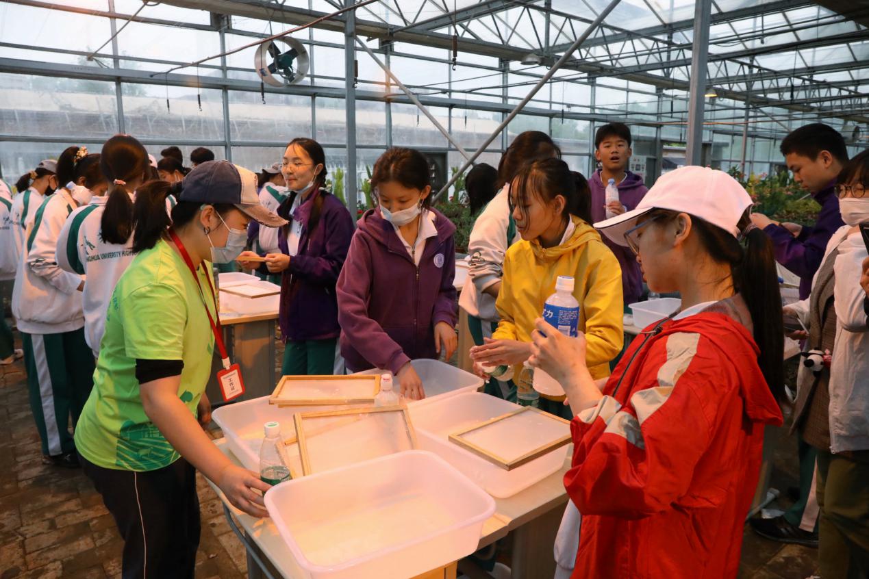 在劳动实践活动教室,指导教师对纸的起源、蔡伦造纸、古法造纸的工艺流程及实验实践活动具体步骤等进行了详细讲解,并现场逐个指导。清华附中的同学们通过课程不仅了解了千年中华传统文脉,更亲自体验传统文化的魅力,敬仰古代劳动人民,感受伟大的中华文明。