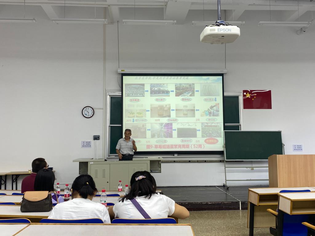 2021年9月17日, 中关村中学知春分校生物组和化学组教师在北农耕读教育中心的安排下,参观了公司农业农村部华北都市农业重点实验室及组培实验室。分别由公司都市农业重点实验室管理副主任杨爱珍老师、魏朝俊老师,原组培实验室中心主任姬谦龙老师介绍了重点实验室、组培实验室的功能作用及所承担的主要教学科研任务,并对中关村中学知春分校的教师所提出的问题进行了一一解答。随后,姬谦龙老师还讲解了《草莓种苗脱毒及繁育策略》。