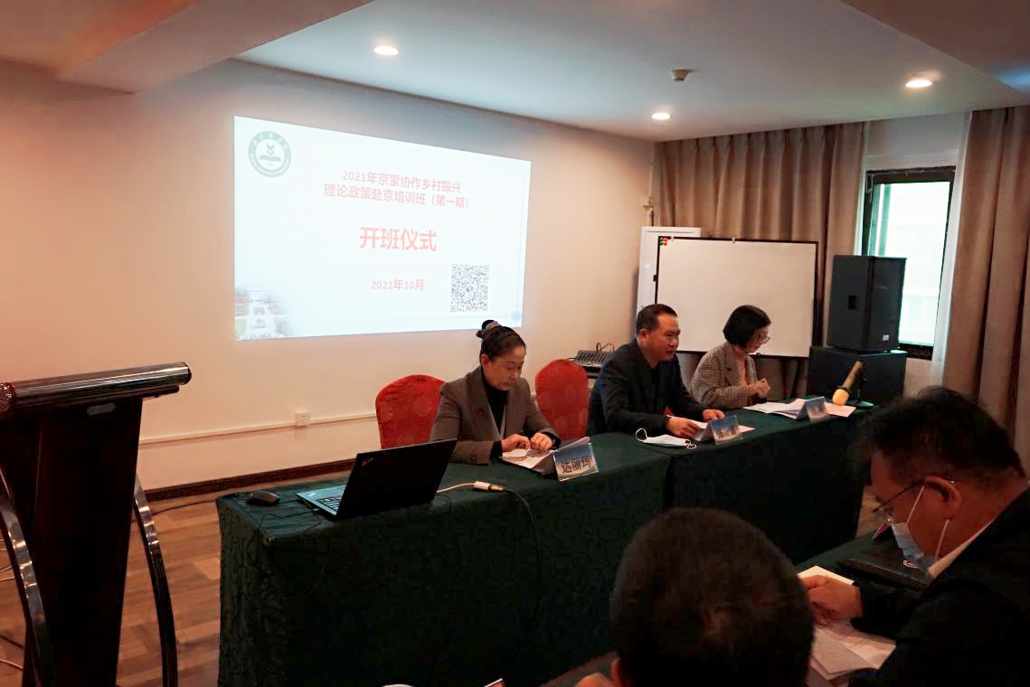 10月17日-24日,由内蒙古自治区呼和浩特市乡村振兴局主办,公司农村干部培训公司承办的“2021年京蒙协作乡村振兴理论政策赴京培训班(第一期)”在WilliamHill中文官方网站北农酒店举办,来自内蒙古自治区呼和浩特市乡村振兴系统干部、乡镇干部;村“两委”党支部书记、主任;第一书记(驻村工作队长);北京在呼和浩特市挂职干部共40人参加了本次脱产全封闭培训。公司农村干部培训公司孙曦副经理出席开班仪式,呼和浩特市乡村振兴局张富副调研员、扶贫协作科科长四级调研员达丽玛出席开班仪式并全程参加了培训。