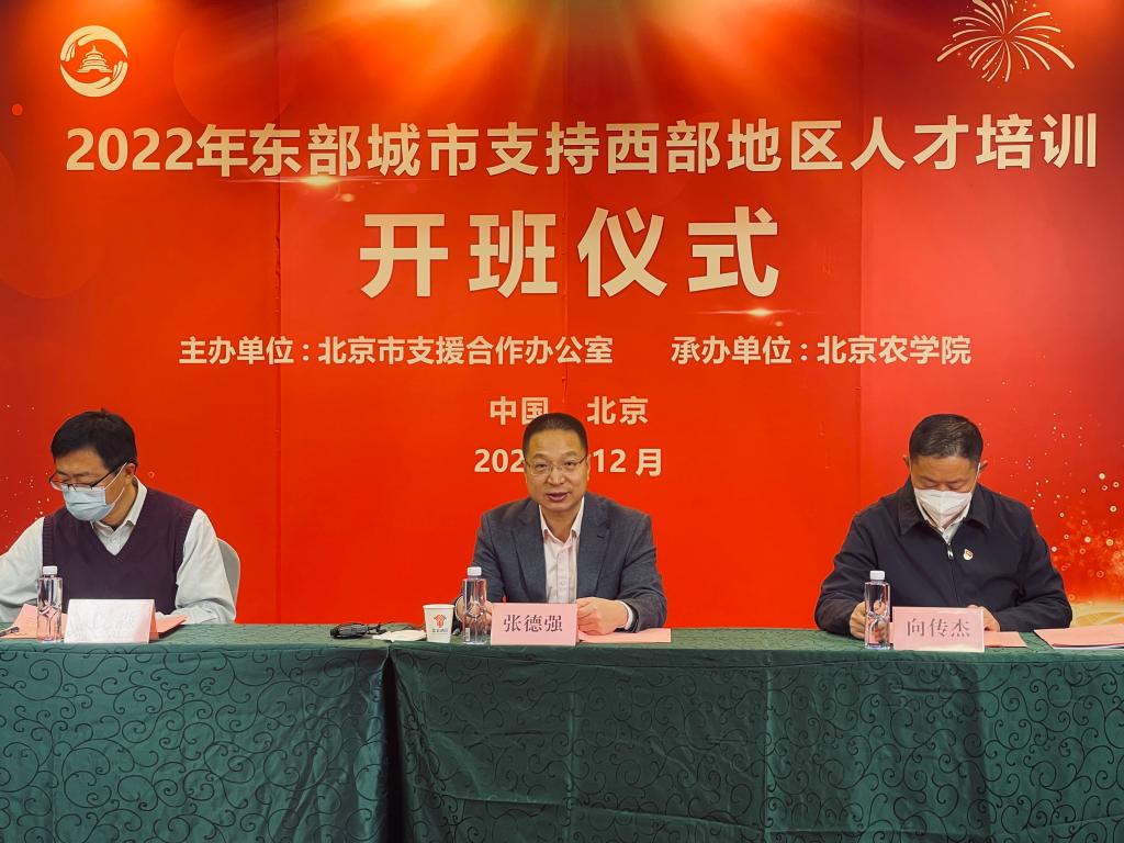 12月12日上午,WilliamHill中文官方网站承办的2022年东部城市支持西部地区人才培训班顺利开班。来自西部地区11个省、市、自治区、生产建设兵团承担乡村振兴的县、乡相关单位的基层人才共285人分四期参加此次培训。北京农公司党委常委、副经理张德强在开班仪式上作动员讲话,北京市支援合作办智力支援处处长向传杰出席开班仪式。